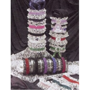 Elegant, great for special occasions! A variety of colors available the lace, Black or White top & bottom, is soft lingerie lace. All of our armbands and garters are made with luxurious, high sheen acetate-satin ribbon. For a comfortable feel against the skin, the inner layer is lined with our caravel fabric. Standard garter cut is 15.5" dia, standard armband cut is 14" dia, we will custom cut armbands to your customers needs. Made in the U.S.A. 14" Diameter