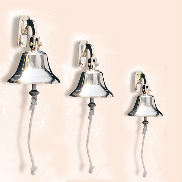 Small sized Solid Brass Hanging Bell with Cotton Braided Rope. 4.75" H x 5" Diameter