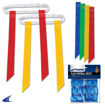 45" web belt. Flags attach to belt with hook & loop fastener. Includes 2 regulation 18" PVC flags that attach with hook & loop fastener.