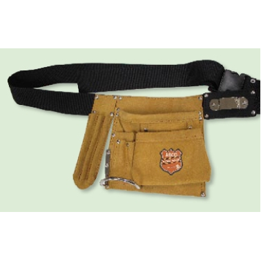 Suede, Tool, Waist Strap, Cowhide Leather, 2" Adjustable Belt, Reinforced Corner, Quick Release Buckle, 2 Pocket, 5 Tool Holder, Metal Hammer Holder, Tape Measure Clip. 9" L x 9" H
