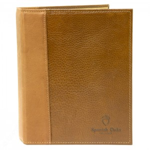 Leather ring binder with horizontal pocket inside front cover. Padded, moire lined, square corners, brass ring metal and concealed rivets. Turned & sewn 3-piece cover construction. Fits 11"x8 1/2" + 1/2" SS. Also available in Euro Soft, Glazed Old World and Distressed Old World Leather. Call for quote. Optional: Pen Loop. 11" W x 8 1/2" H x 1/2" D