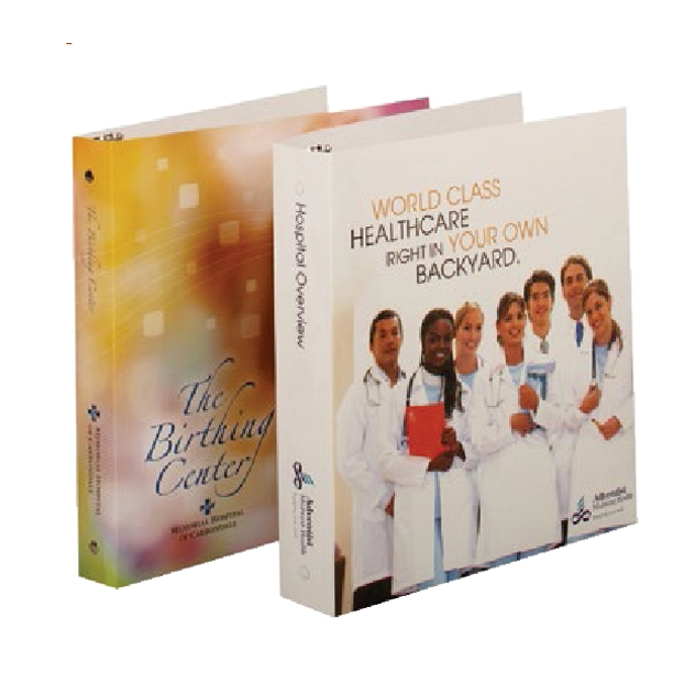 High quality, soft cover Paper Binders are perfect for short term presentation materials such as media or promotion kits. A stunning binder can be created with a colorful design on the cover. Binder can be printed, hot stamped or embossed. Laminated with 18 Point Coated one side. 10 7/16" W x 11 1/2" H x 13/16" D