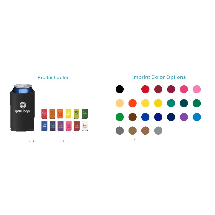 The KOOZIE Can Kooler. Now bringing your message to life in full color. The best full color imprint in the Industry Sharp, clear, photographic quality Available for 1-color to full-color imprints Gray interior foam Available in unlimited colors (most popular featured) Materials: Polyester with Foam Backing Product Size: 5-1/4"h x 3-7/8"dia. Product Colors: Black, Bright Orange, Burnt Orange, Green, Lime, Maroon, Navy, Pink, Purple, Red, Royal, White,. 5.25" W x 4.38" H