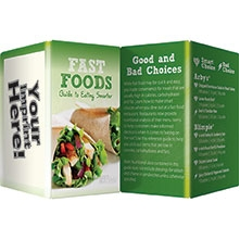 Enjoy fast food the right way by following the "Good Choice/Bad Choice" guidelines for your menu selections. Look for the heart on the Key Point for healthy food items, and stay away from the lightning bolt for items higher in fat, calories and carbs. Being health conscious will help you manage your weight and will lead to a more healthy and active lifestyle. Developing better eating habits can improve your overall well-being. The whole family can benefit from this educational guide. Complies with CPSIA. 2 1/8" W x 3 3/8" H
