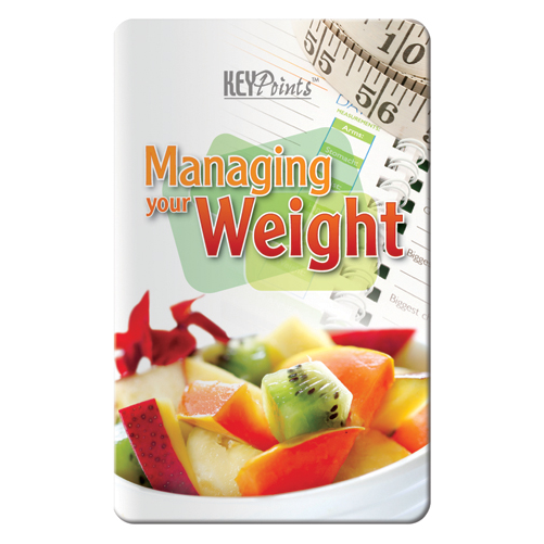 Keep track of your weight all year long with this month-to-month weight record keeper. Also included in the Key Point are tips on eating right and losing weight, as well as sections to record your weight loss goals andexercise regimen. Complies with CPSIA. 2 1/8" W x 3 3/8" H