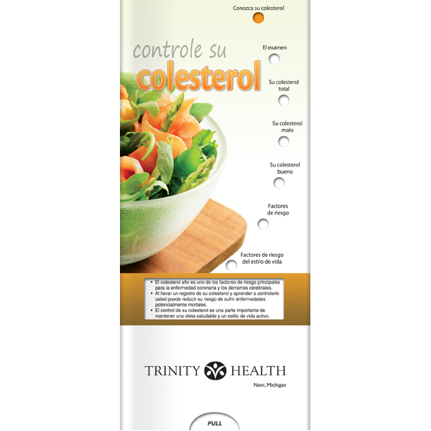 Stay healthy by keeping track of the important factors that influence your cholesterol level with this slide chart. This reference guide is filled with valuable information and tips on eating right, foods to avoid, good and bad cholesterol and significant risk factors. Complies with CPSIA. 3 3/4" W x 8 1/2" H