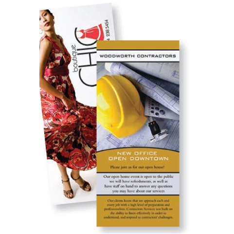Display them on counters or use as stuffers or mini-flyers. Attract new customers. Build your brand. Promote new products, services and events. Newsletters, Invitations, Booklets, Labels, Note pads, Greeting Cards and so much more. Don't see what you are looking for? Give us a call. 3 5/8" W x 8 1/2" H