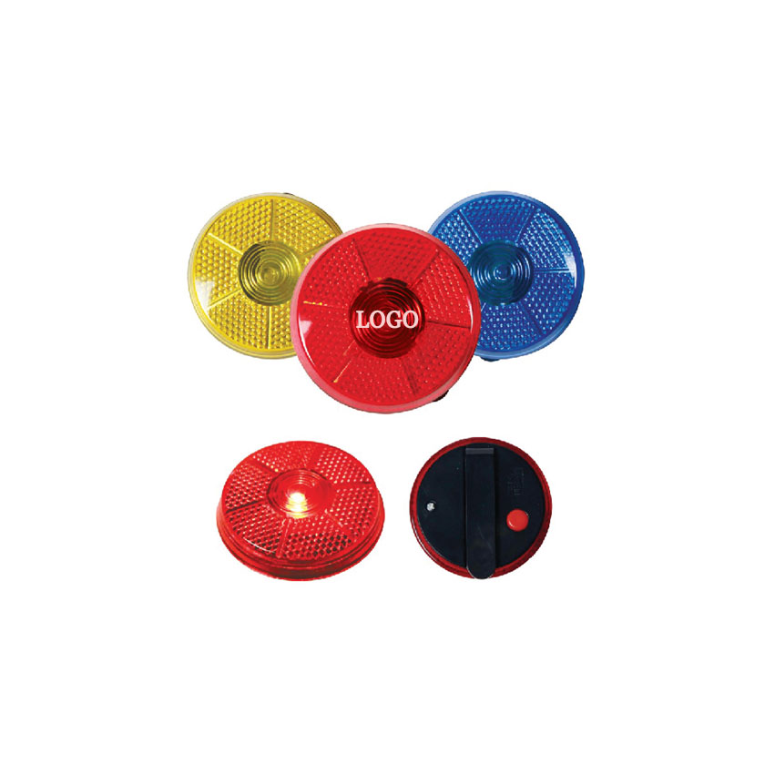 The flashing button is made of AS and ABS with 2 LR44 Batteries inside. The round flashing safety button keeps people aware of your presence and your brand. The red light blinks rapidly to bring attention to the logo. To activate the LED light, simply press the button on the back of the clip. It has sturdy clip on its back to wear on belt loop or pocket. It is great for trade shows, conventions and fairs. 2" Diameter x 0.625" H