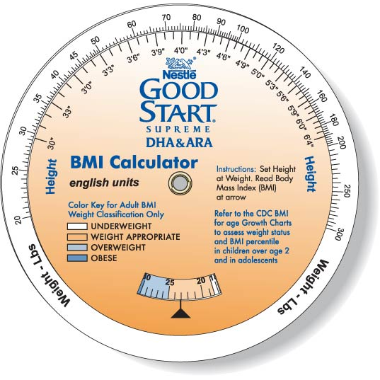 3 Wheel Body Mass Index Calculator. Children & Adult, Metric charts. Digitally printed in high resolution full color & UV Varnish directly on to the .020 White Vinyl Plastic material. This makes for a top quality, long lasting wheel. Use our standard template or supply your own customized one. Ideal for Family Doctors, Pediatricians, Fitness, Health, Nutrition, Diet & Insurance Industries among others. Custom imprint and bleed edge allowed. Outside wheels 3.5" dia. & Middle wheel - 4.25" dia. Complies with ISO 9001, RoHS. 4.25" Diameter