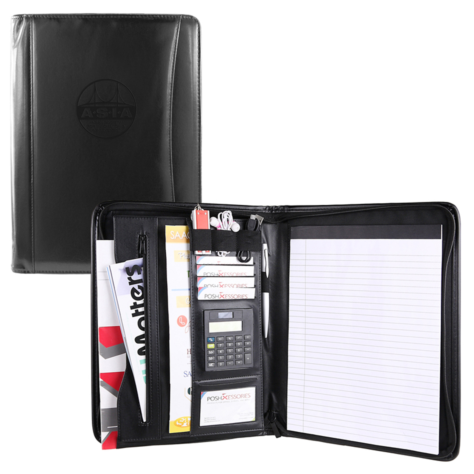 Happy recipients are out in large "numbers" when they receive the Atlantis Leather Calculator Portfolio! With Tuscan cowhide, this bonded leather calculator portfolio features a dual-power, full-function calculator, 1" deep gusset pocket with a pop-up, self-adhering note holder, card slots, an I.D. window, two sections inside the front cover for papers, an elastic pen loop, zipper closure and standard 8 1/2"x11" ruled note pad. It's the perfect padfolio folder. 10" W x 12 3/4" H x 1 1/4" D