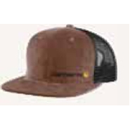 100% cotton corduroy with 100% polyester mesh back. Sweatband wicks away moisture for comfort. Structured, high-profile cap with flat brim visor. Adjustable fit with plastic closure. Carhartt embroidery on front. Carhartt label sewn on back.