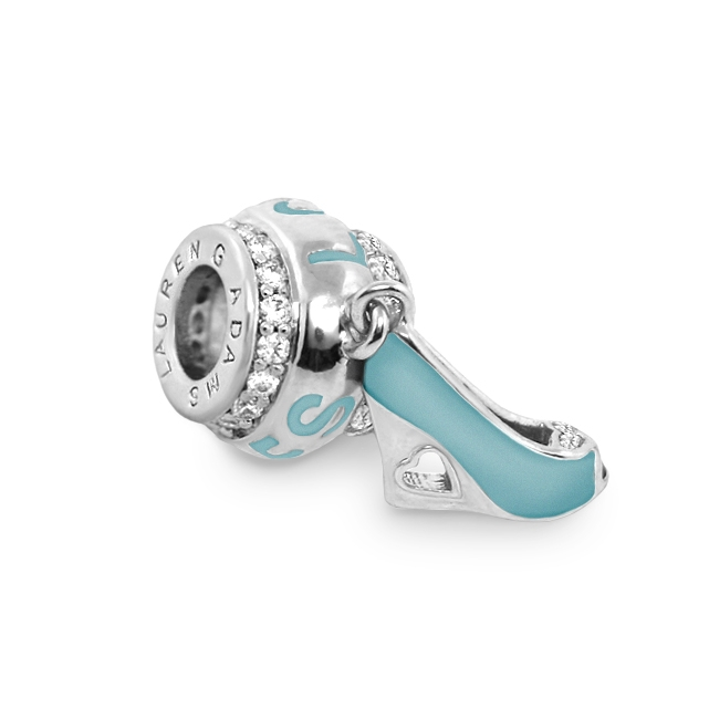 From the Gabriella Bead Collection, you can create a memorable and joyful bracelet with high-quality, hand enamel beads. Each bead has its own personality and can be combined together to create a theme or story unique to you. Shoes rhodium finish bead with hand enamel and crystal pave.