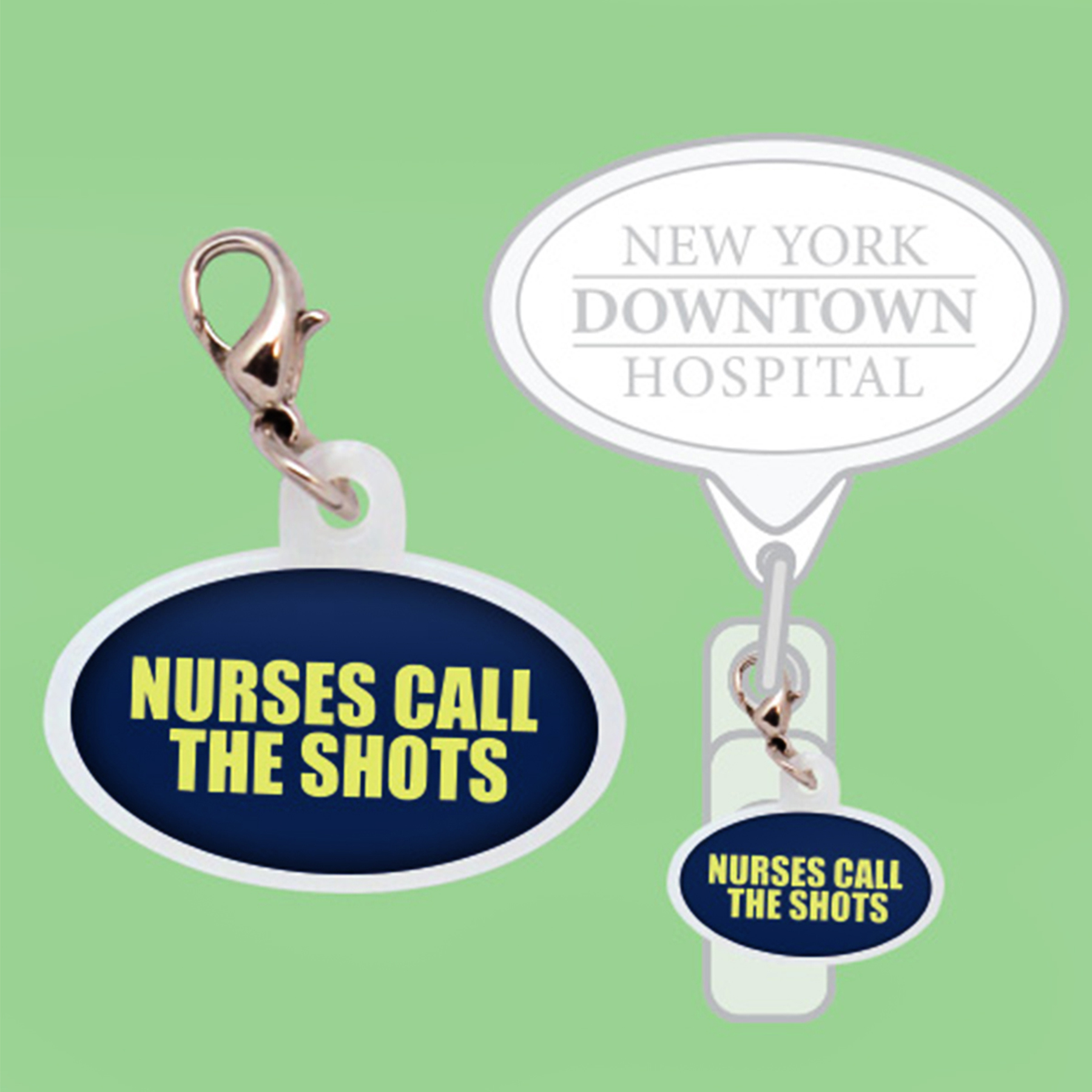 Oval badge reel charm has clear frosted plastic body with metal attachment clasp. Easy to use, easy to attach. Dress up your badge reel with an additional logo, cause, message, tag line, etc. Add to your new badge reel order of your already existing badge reels. Patent pending... add a little charm to your reel!. 0.98" W x 1.2" H