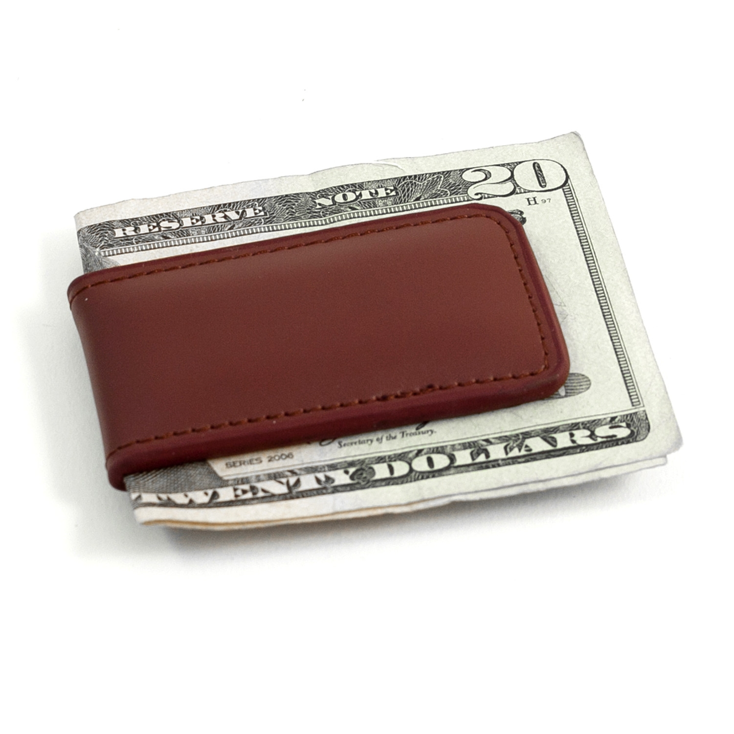 Secure your cash with convenience with help of this handy holder! This tarnish proof, brown leather magnetic money clip makes a fantastic giveaway to be distributed during upcoming promotional events. Add your logo and personalize this product for an excellent opportunity to promote your business. Tradeshows, conferences and fundraisers are just three of many choices to present this item. Don't "clip" your campaign short; order yours today!. 0.25" H x 1.5" W x 2.65" D