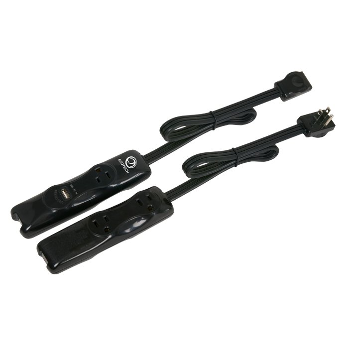 1 USB outlet and 3AC/DC outlets (125V/15A). A must for all business travellers. The 185798440224cord uses a flat head side input for easier installation in those hard to get places. The UL/CUL approved travel outlet strip. 2" D x 7" W x 2.5" H