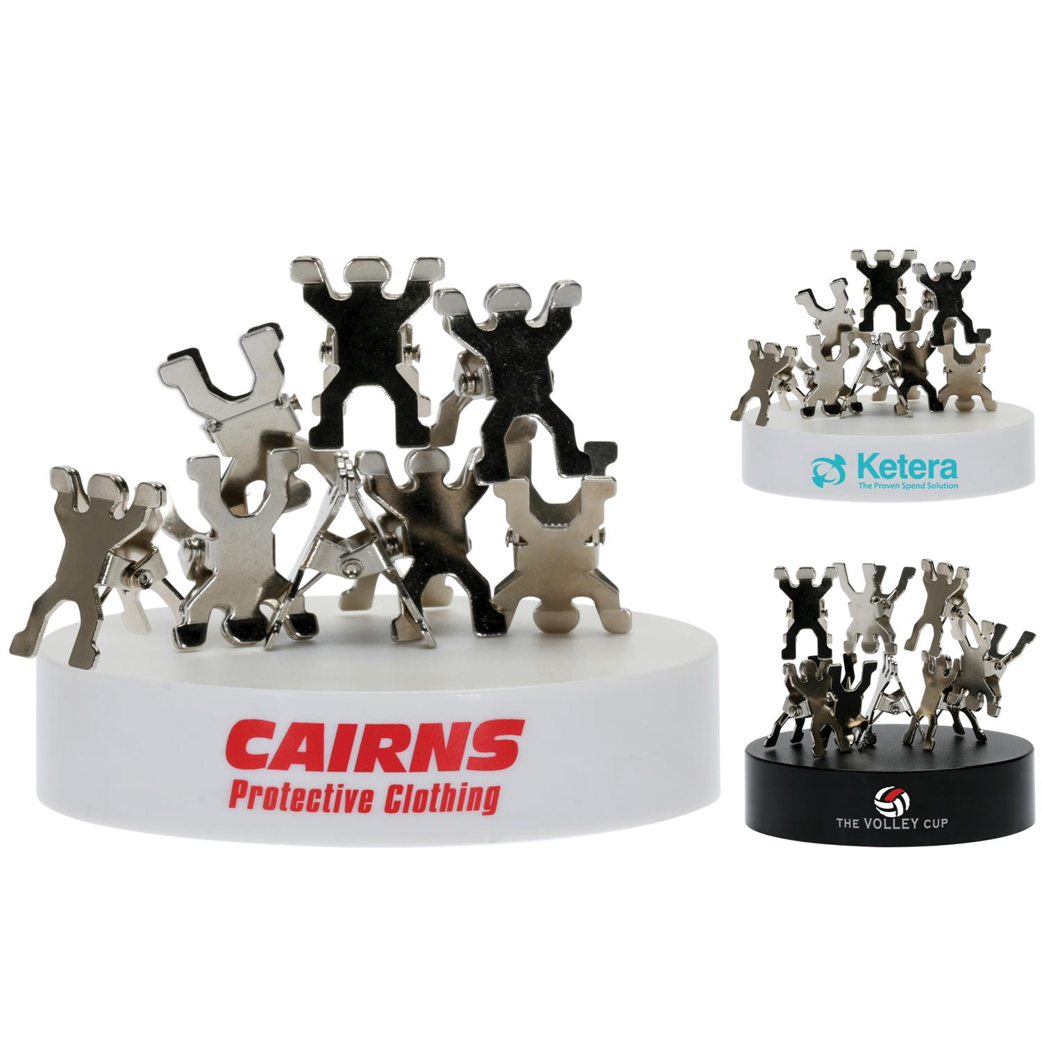 Mini people-shaped clips on an oval magnetic base. 3.75" L x 1" H