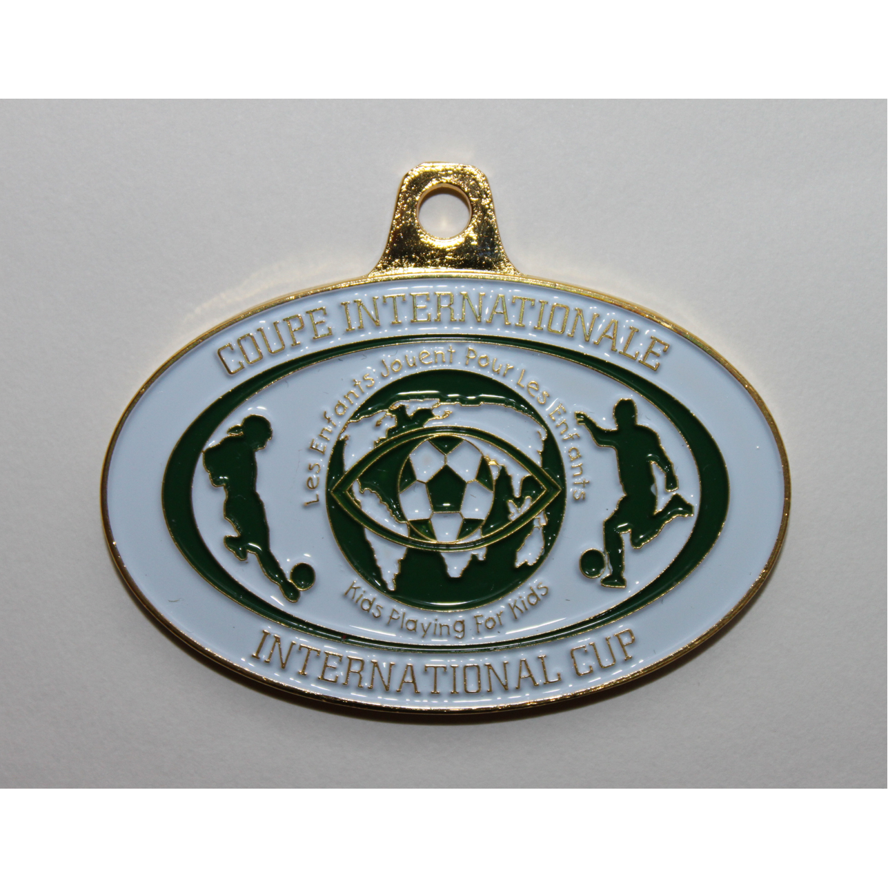 Custom 2'' Die Cast Medallions are die cast from Zinc alloy, coated with metallic finish and filled with up to 4 Soft Enamel colors. Each color must be separated. Price Includes: All Set-Ups, Custom Shape, 4 Colors Soft Enamel-1 side, PMS color matching. Finshes: Gold, Silver (Nickel), Bronze (Copper), Gun Black. Options: Epoxy Dome, Back Die, Ribbons,Textured, Additional Colors. For Back Die add $80.00 (C). 2" Diameter