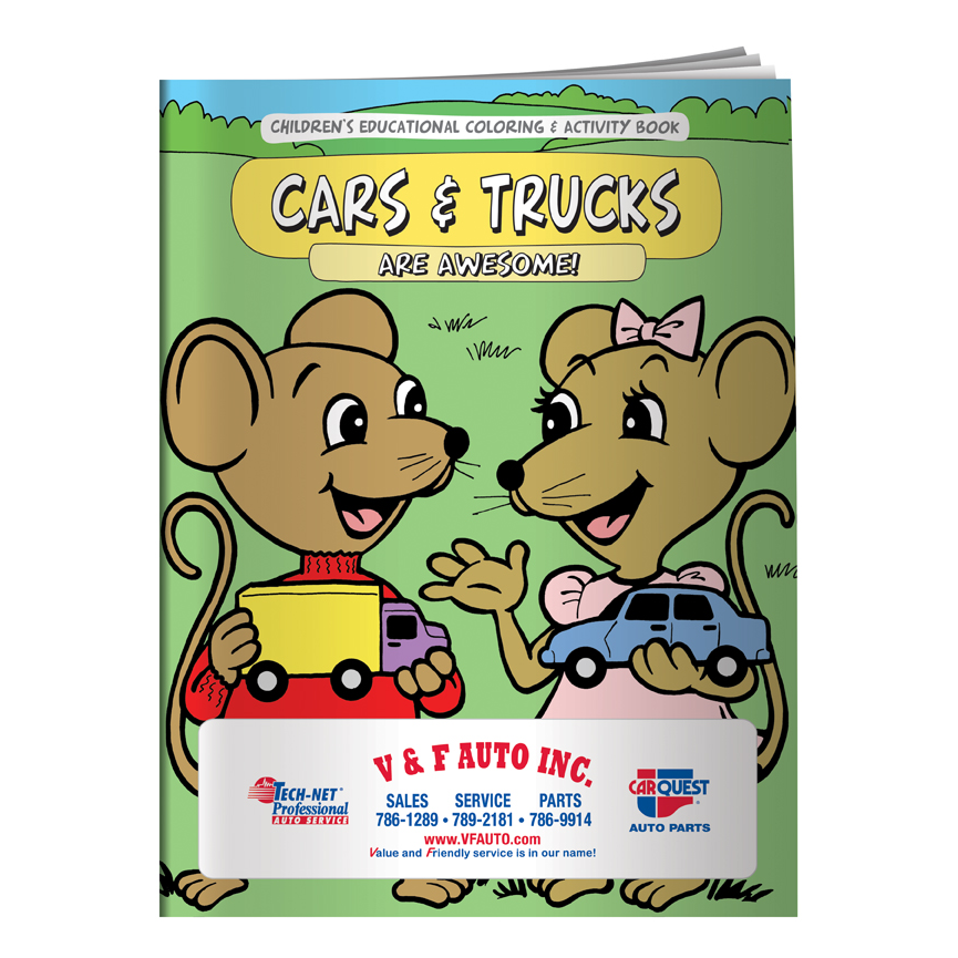 There are so many different types of cars and trucks- discover them all in this fun coloring book. Complies with CPSIA. 8" W x 10 1/2" H