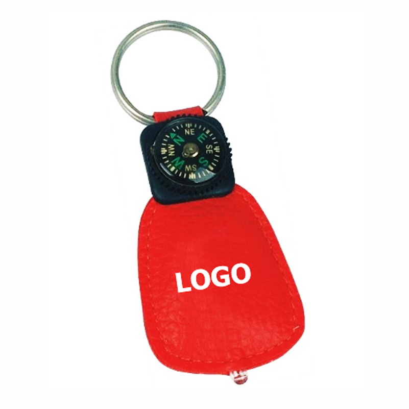 Multi-functional Leather Light Key Chain With Compass. 1 3/4" W x 2" H