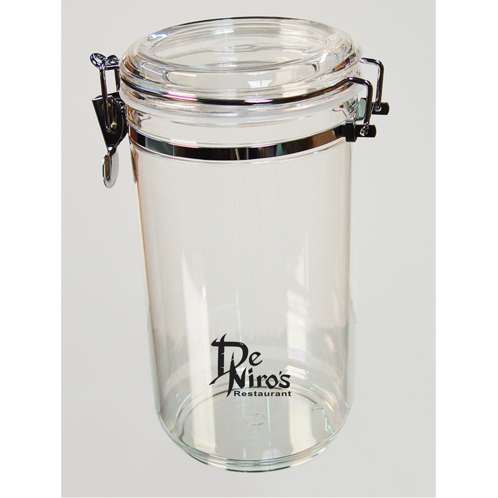 Our 5" 70oz Jumbo Canisters is see-through acrylic and the Lid has a secure side latch which create an airtight seal to lock in freshness and keep moisture out. Come in 5 different sizes. 5" Diameter x 9" H