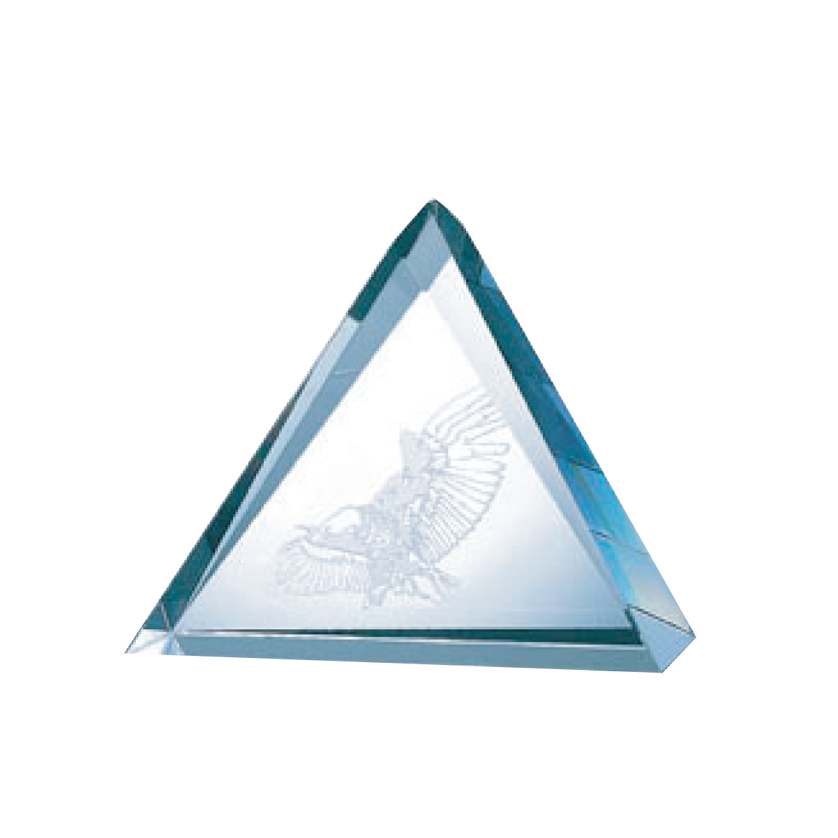 6" x 7 3/4" Optical Crystal Triangle Plaque Award with Deep Sand Carving in one location. 6" H x 7 3/4" W x 1 9/16" D