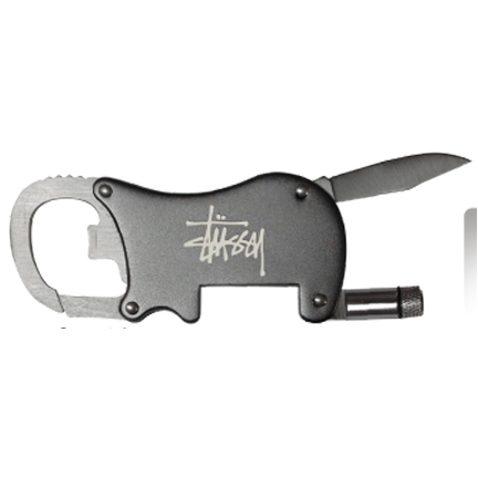 Metal body knife, One LED light, bottle opener, carabiner clip. Great for construction, hikers, bikers. Perfect multi-functional tool. 3-LR621 batteries included. 3.53" L x 1.50" W