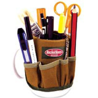 Turns any standard 12-15 Oz. mug into a great desk organizer. Eight pockets corral pens, pencils, X-Acto knives, scissors, and more. Cavernous center holds more than it's fair share of desk essentials. Also features adjustable diameter.