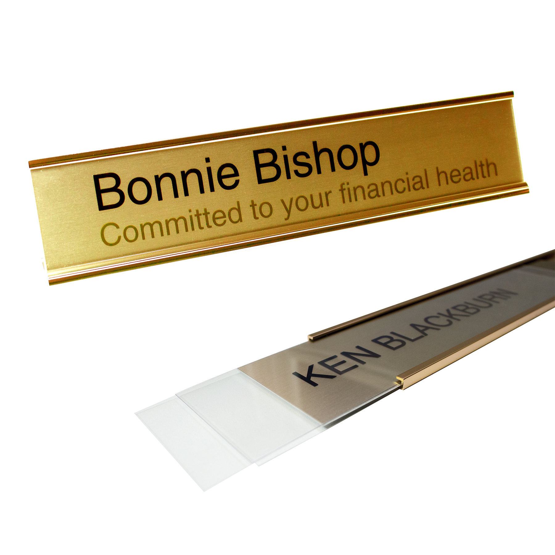 The Mighty Badge5798841504Desk Signage Kits are a stylish, multifunctional, cost-effective solution when branding your professional space. Repurpose your signage by simply replacing the printable insert.Flexibility and speed - no more long wait times or delivery fees with our on-site, simple software printing capabilities. Complies with Prop 65. 2" H x 10" L x .025" Thick