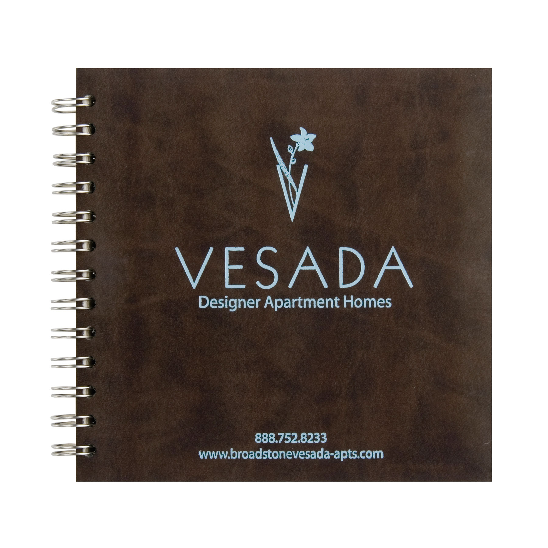 Our leather spiral journals feature premium bonded leather (in 11 colors) or recycled leather (in 2 colors). Also features 100 Lined, Graph or Blank Sheets (quality 60# Text Paper). Custom fillers, biodegradable pens and a wide variety of other options are available to customize this piece and make it your own! Call factory representative for more information. Complies with Prop 65. 5" W x 5" L