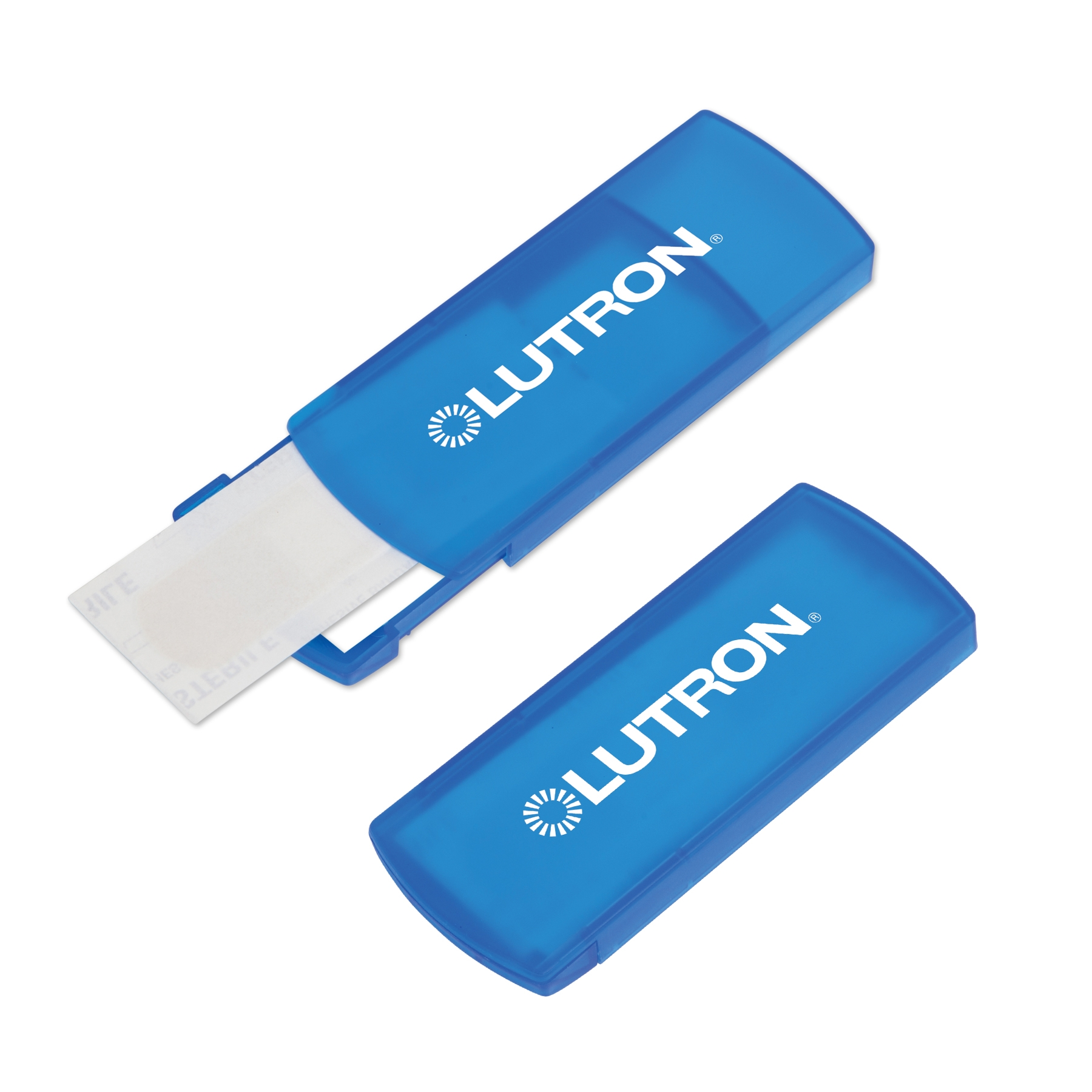 Our sliding bandage strip dispenser contains five non-latex bandage strips. Great for doctor offices, hospitals, schools and more! Add your imprint to the plastic dispenser and get your brand noticed! Available in blue and red. 4" W x 1 9/16" H