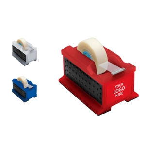 Tape dispenser with soft rubber grip and feet. Matches to make a set with our stand up staplers, pencil caddy and magnetic clips. Also features a large ColorDome (4 color process) decorating option on the front. Tape included for immediate use. 4 5/8" W x 2 3/4" H x 3" D