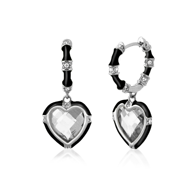 It's jewelry fit for fashion royalty. The Prince Charming collection is all about color and pop. Make the lavish look yours. Huggie earrings in rhodium covered brass with enamel and heart-shaped pineapple cut cubic zirconia (40mm).
