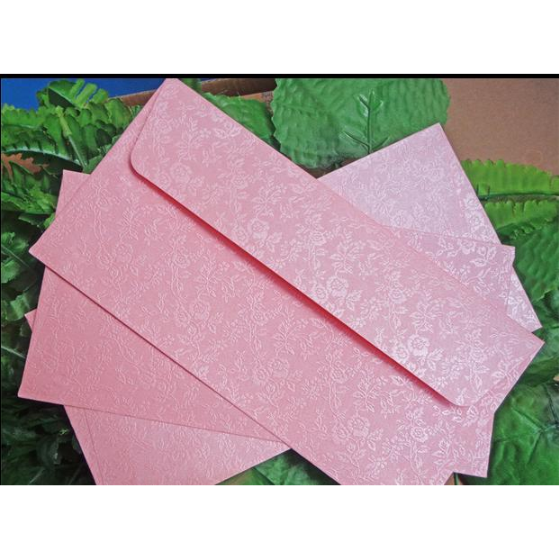 120 gsm Purple-red color invitation letter cover or business envelope with golden color shiny coated backing. Size of #5 envelope, 110 mm x 220 mm, if an A4 paper folded 3 times, then it fits this envelope. With raised texture on its surface. 4 11/32" L x 8 11/16" W