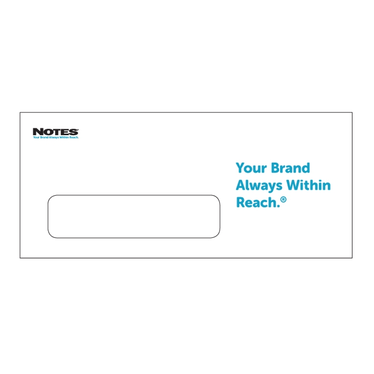 Standard envelopes price includes: Imprint your logo with PMS color match or 4 Color Process. 24# Ultra White Wove stock. Online order programs available on request. Die cut window options. 4 1/8" H x 9 1/2" W