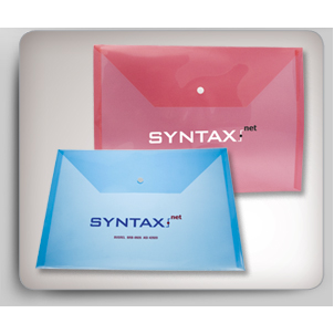 Colorful translucent letter-A4 sized flat envelope with snap closure. 13" L x 9 1/4" W x 1/8" H