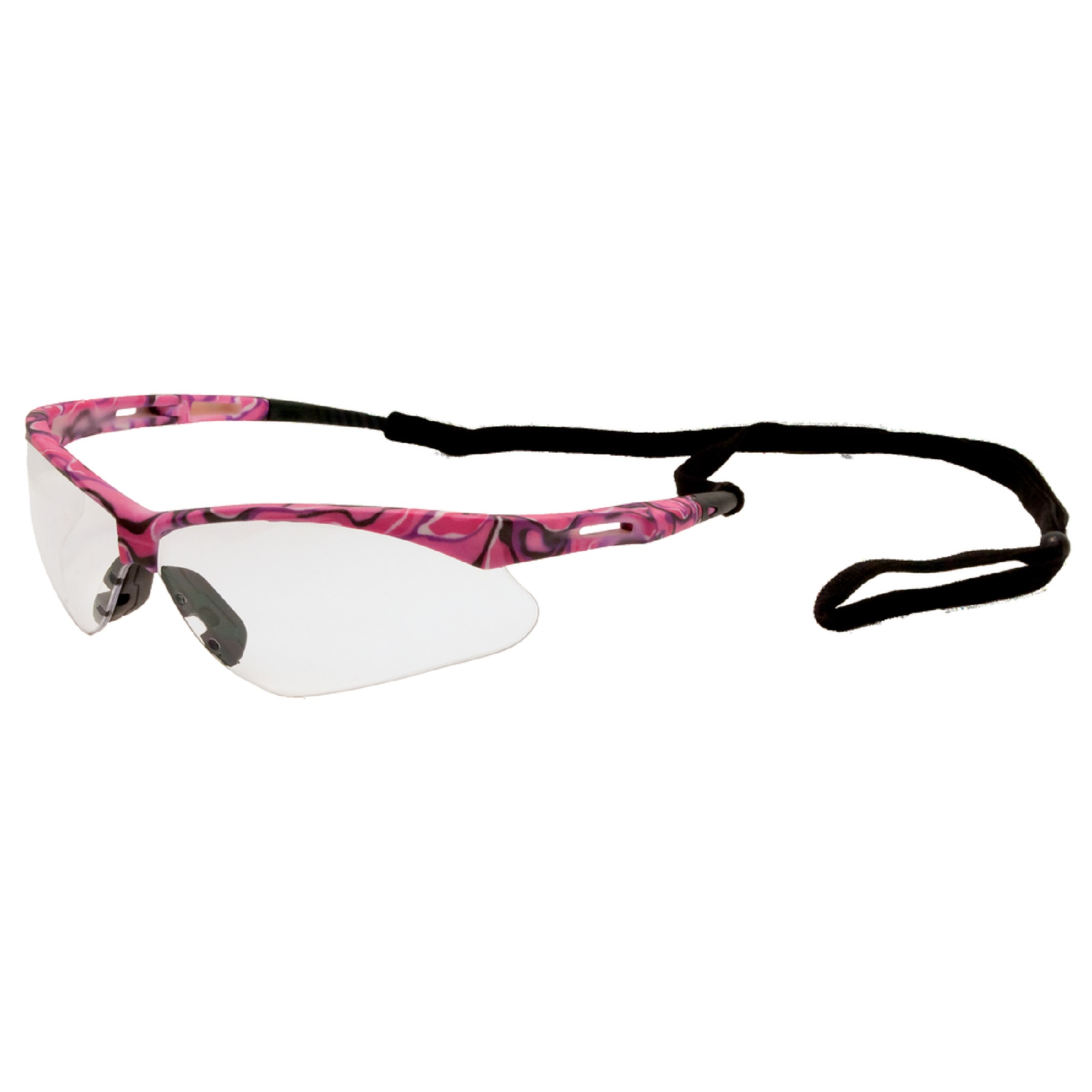 Wraparound temples. Rubberized temple tips allow additional grip. Lenses are treated with scratch resistant coating. 8.5 base curve. Soft rubber nose pad. Complies with ANSI, ISO 9001.