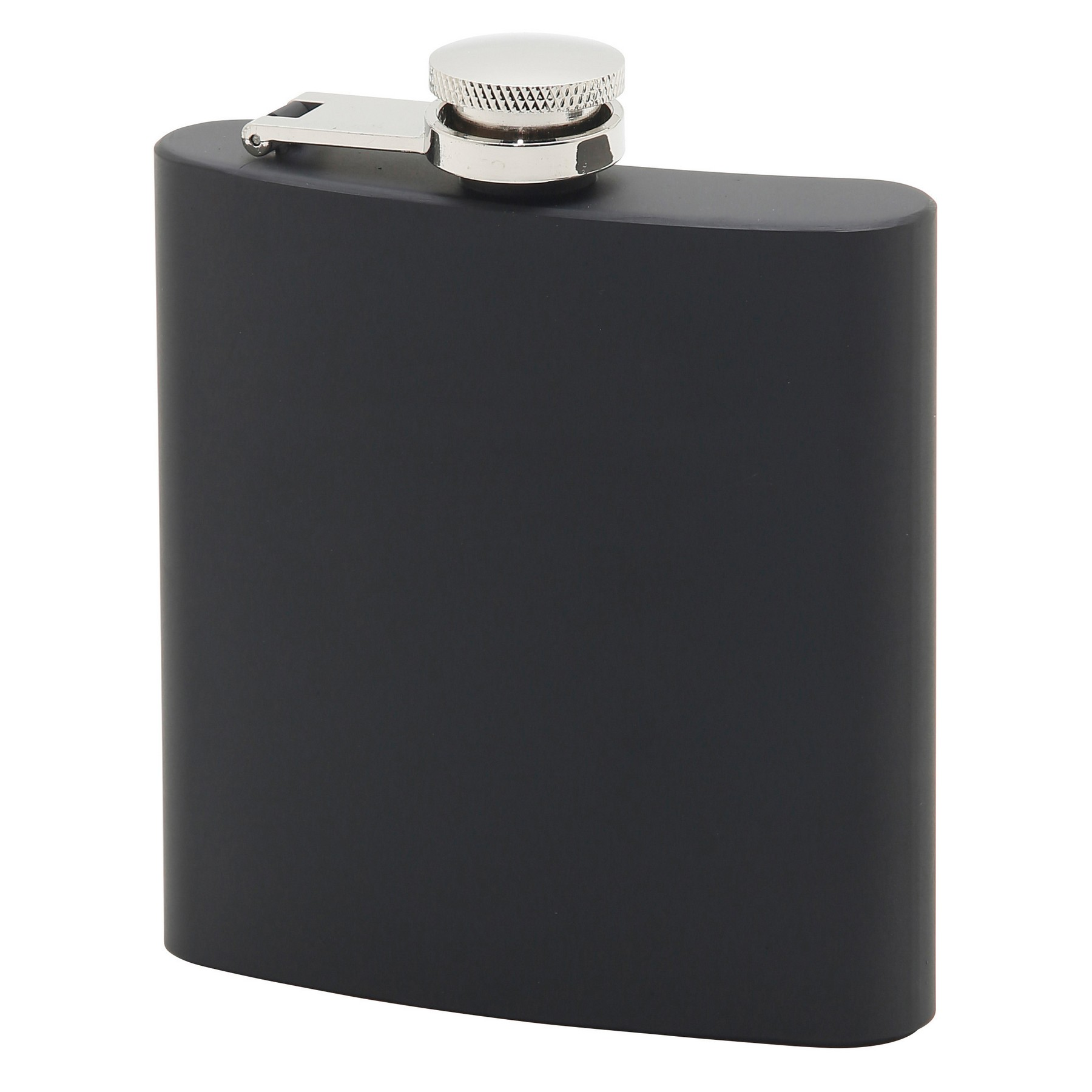 6 Oz. 4 1/2" x 3 3/4" Flask with Screw Top in Black. 4 1/2" L x 3 3/4" W