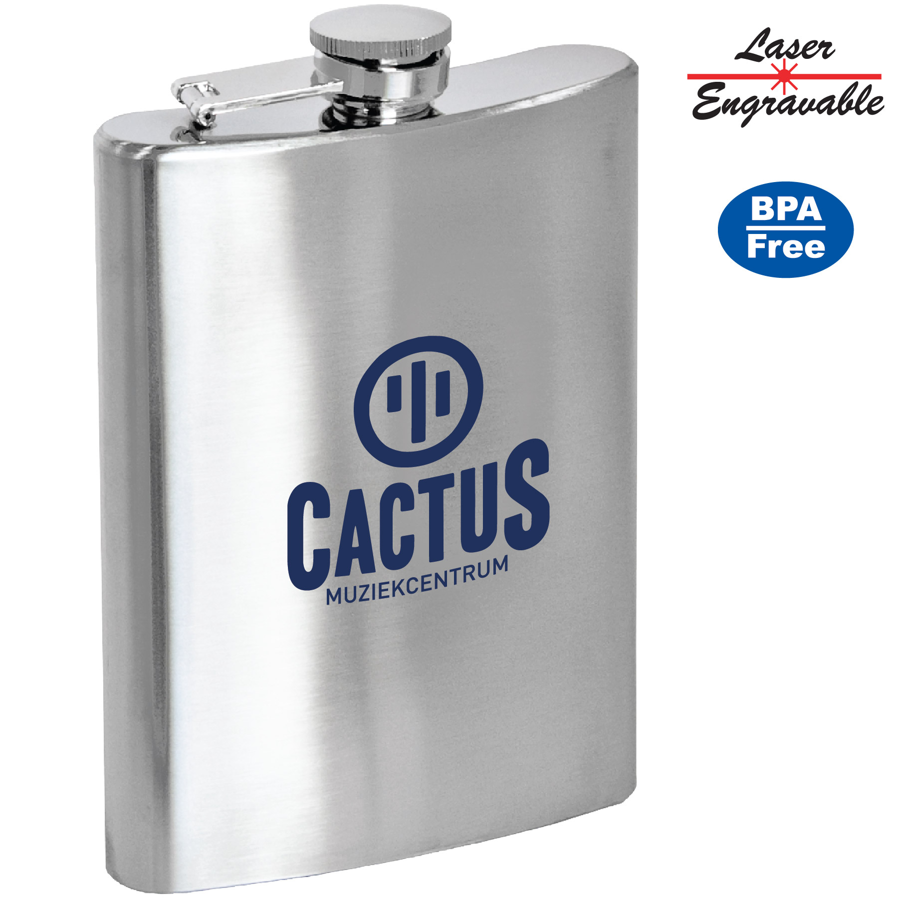 The Lincoln 8 Oz. stainless steel hip flask features a low profile compact design which includes a screw on hinged cap. Great for bringing a favorite beverage camping, hiking, and most outdoor activities. BPA Free. 5 3/4" H x 3 3/4" W x 3/4" D