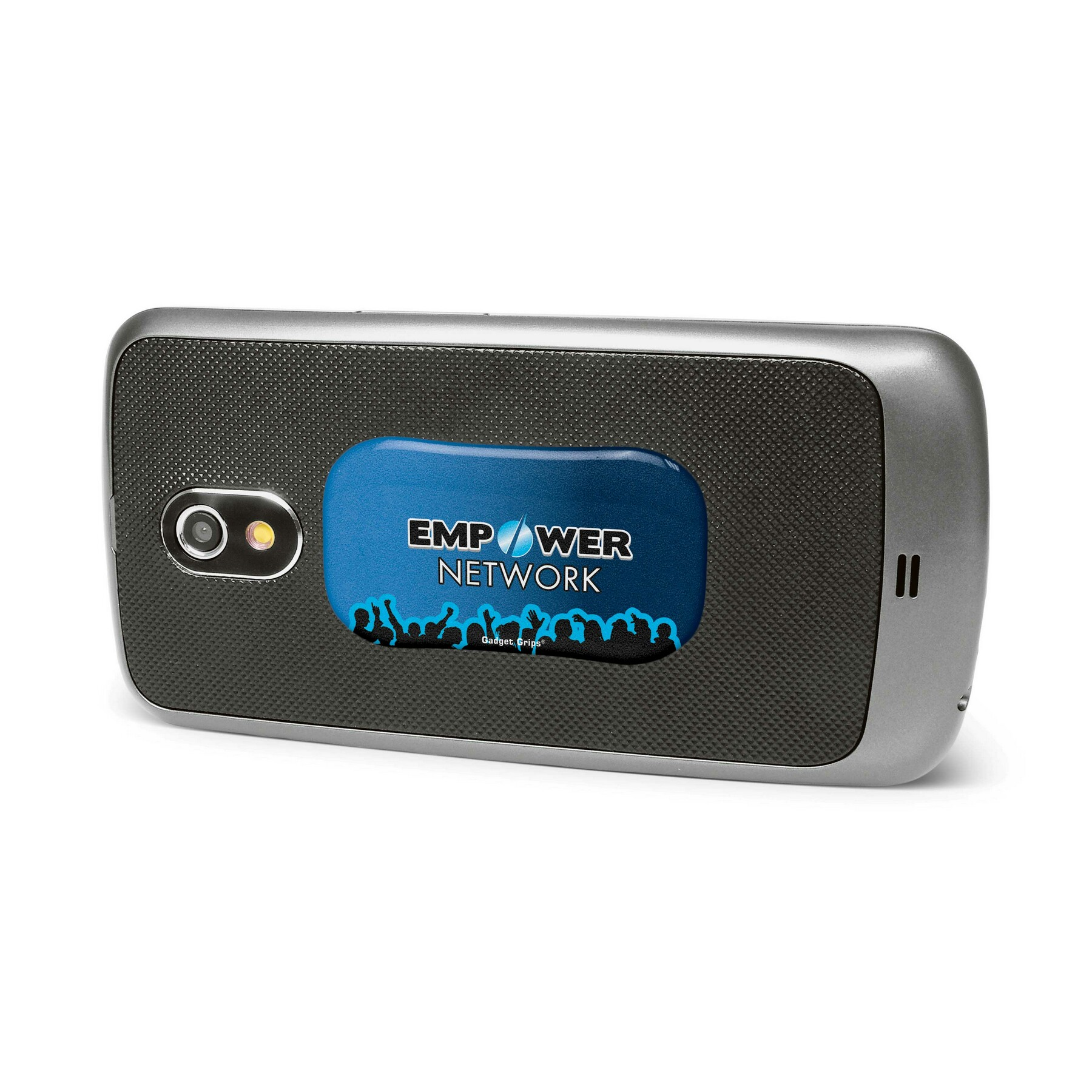 Slip and slide no more! Gadget Grips grip tightly to your cell phone, MP3 Player, PDA - and fit virtually all handheld gadgets, keeping them from slipping and sliding on clean, smooth surfaces. Brilliant full color graphics make it a perfect promotion for recruiting, banks, automotive specialists, schools, software developers, real estate agents. Gadget Grips will be used by clients daily. Made with 3M removable adhesive. Non magnetic, leaves no sticky residue on your phone. 2 1/8" W x 1 1/4" H