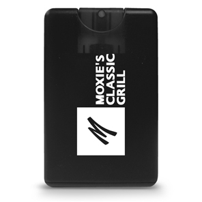 Eliminate germs on the go with this credit card style antibacterial hand sanitizer spray. This sanitary accessory comes in a .68 Oz. / 20 ml container. This handy accessory is perfect for anyone looking to fight germs while in public. This sanitizer is a great idea for gifts, health clinics and events. Decal available in laminated white, clear or metallic. Complies with FDA. 2.18" W x 3.42" H