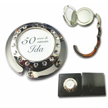 Our bag hanger is a convenient accessory that attaches to any table and keeps your handbag in sight and by your side. It is made of zinc alloy.