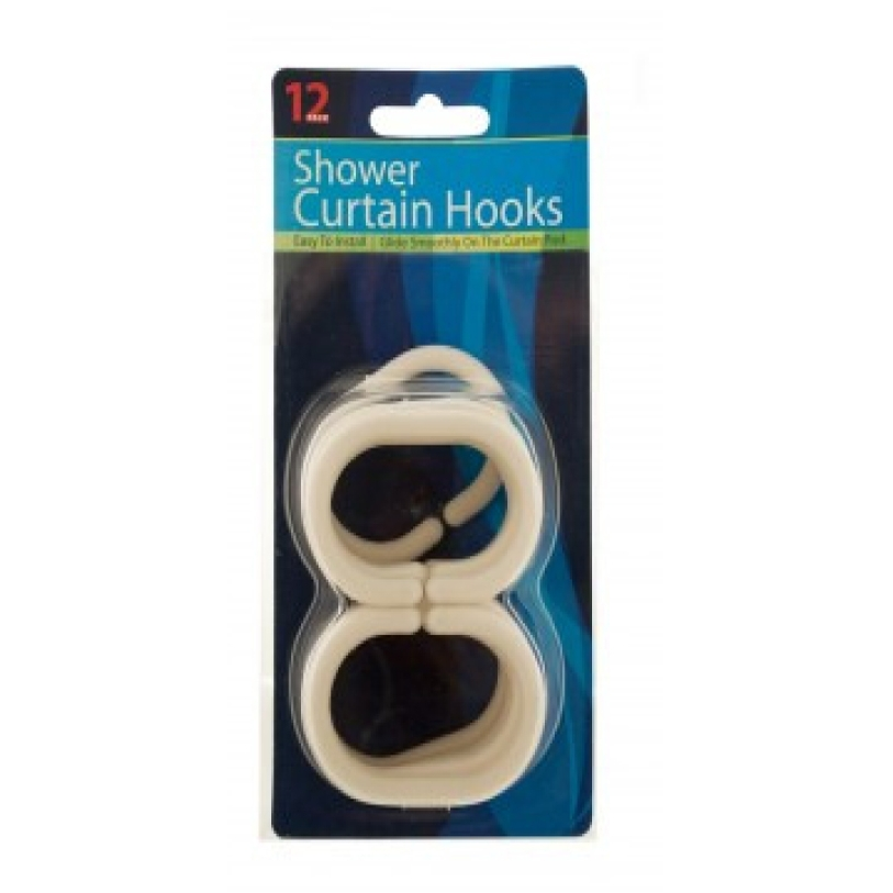 Great with any decor, these simple and elegant shower curtain hooks easily slip into curtains and over rods. Each pack comes with 12 oval-shaped plastic rings. 2 1/4" W x 1 1/2" H