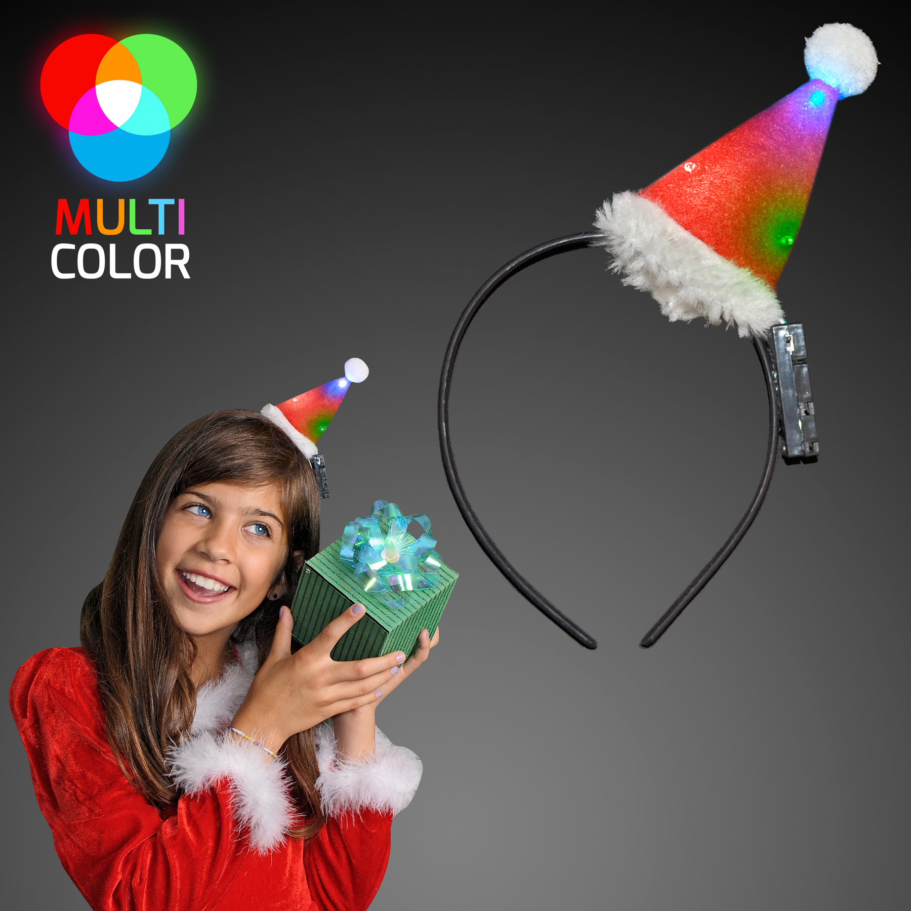 Santa's Little Helper LED Mini Hat Headband is just what you need to be the perfect holiday helper! Look cute & keep your hair out of your face while passing out presents on Christmas Day, sell them at holiday night parades, or give them as gifts. Santa's Little Helper LED Mini Hat Headband makes a great stocking stuffer too. Complies with ASTM, CPSIA, Prop 65. 4.5" W x 3" H