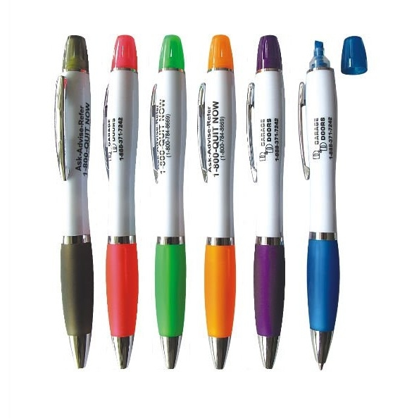 Plan Ahead helix pen and highlighter combination features white barrel, and matching translucent and silver accents.