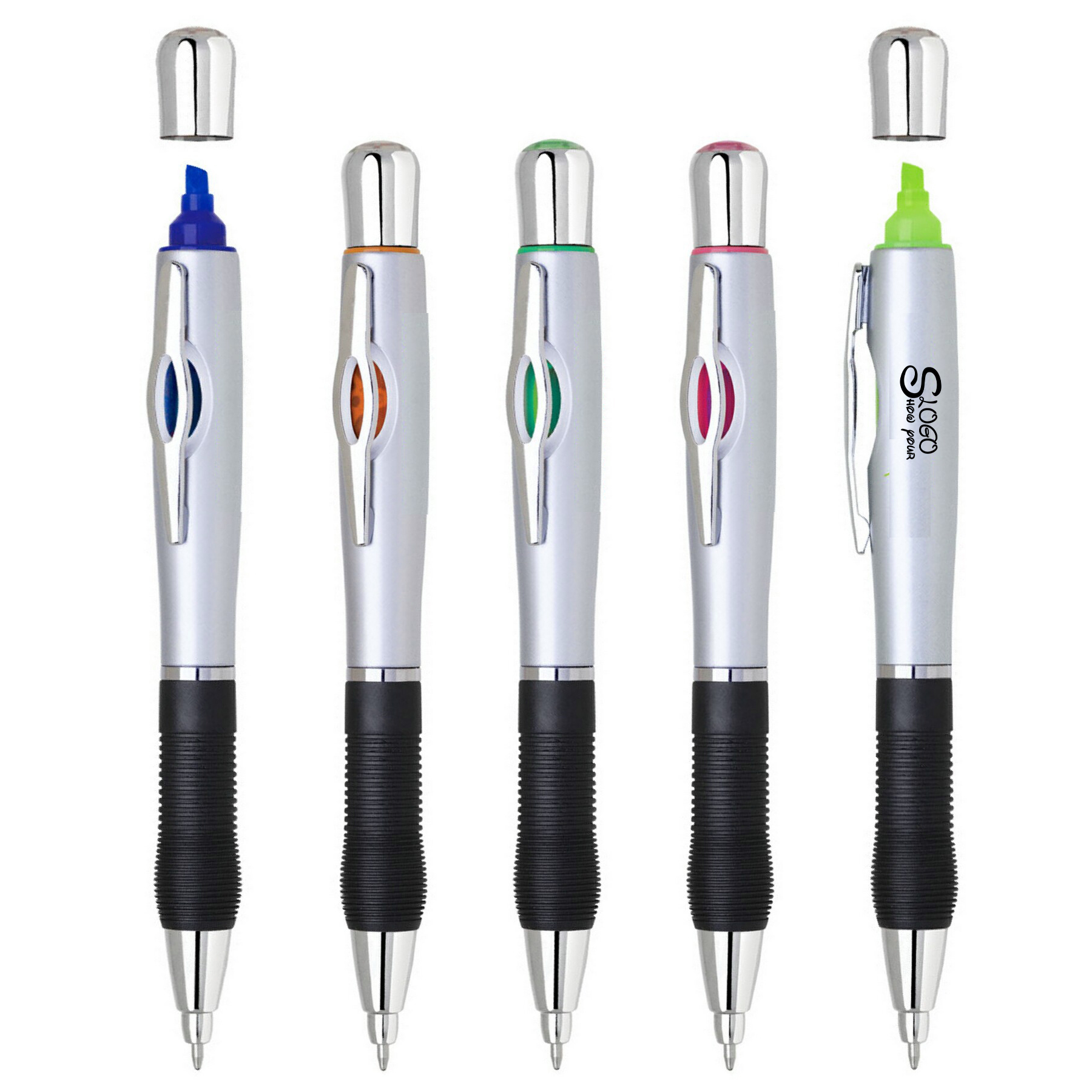 Our great quality product. A great promotional item for campaign. The shipping cost is not included, please quote for current in hand price. Custom color could be considered. Metallic silver barrel with texturized rubber grip. Please call us today.. 5 7/8" L
