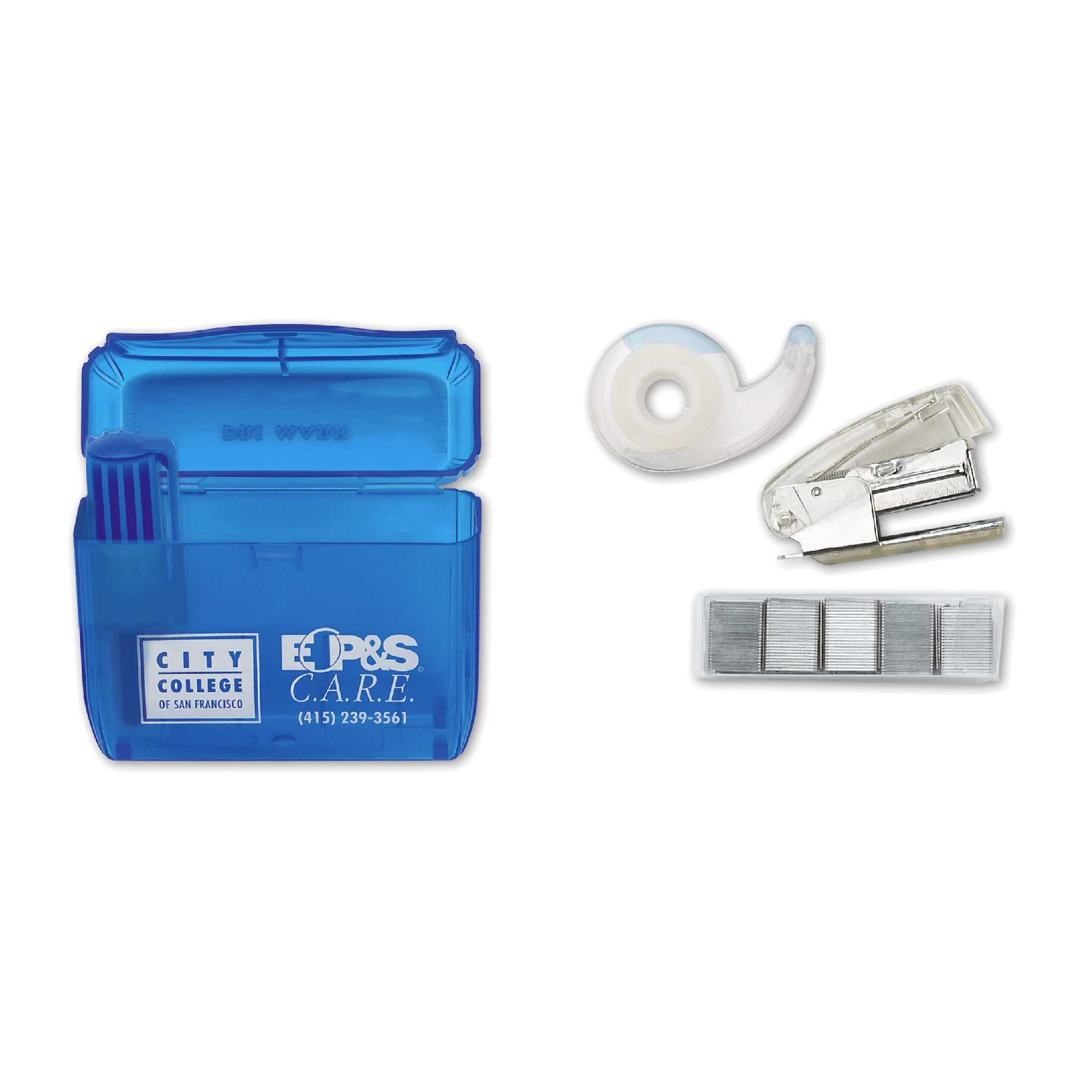 A must have for everyone! The Office on the Go Pack supplies you with your office essentials in one convenient pack. Great for students too!! Includes: Mini stapler, Staples, Tape Dispenser, 1 Mini Max Highlighter. 2 3/4" W x 2 5/8" H x 1" D