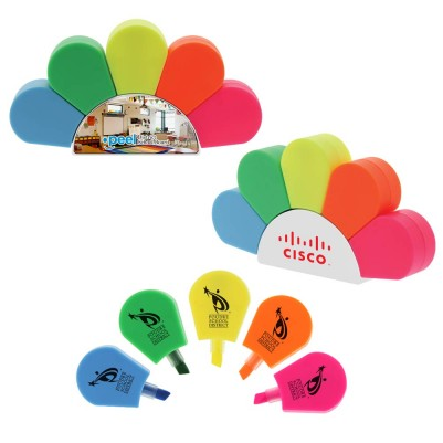 This five color sunrise highlighter is perfect for office or school. Just pull the top off of the selected color to use. 4 1/2" W x 2 3/8" H