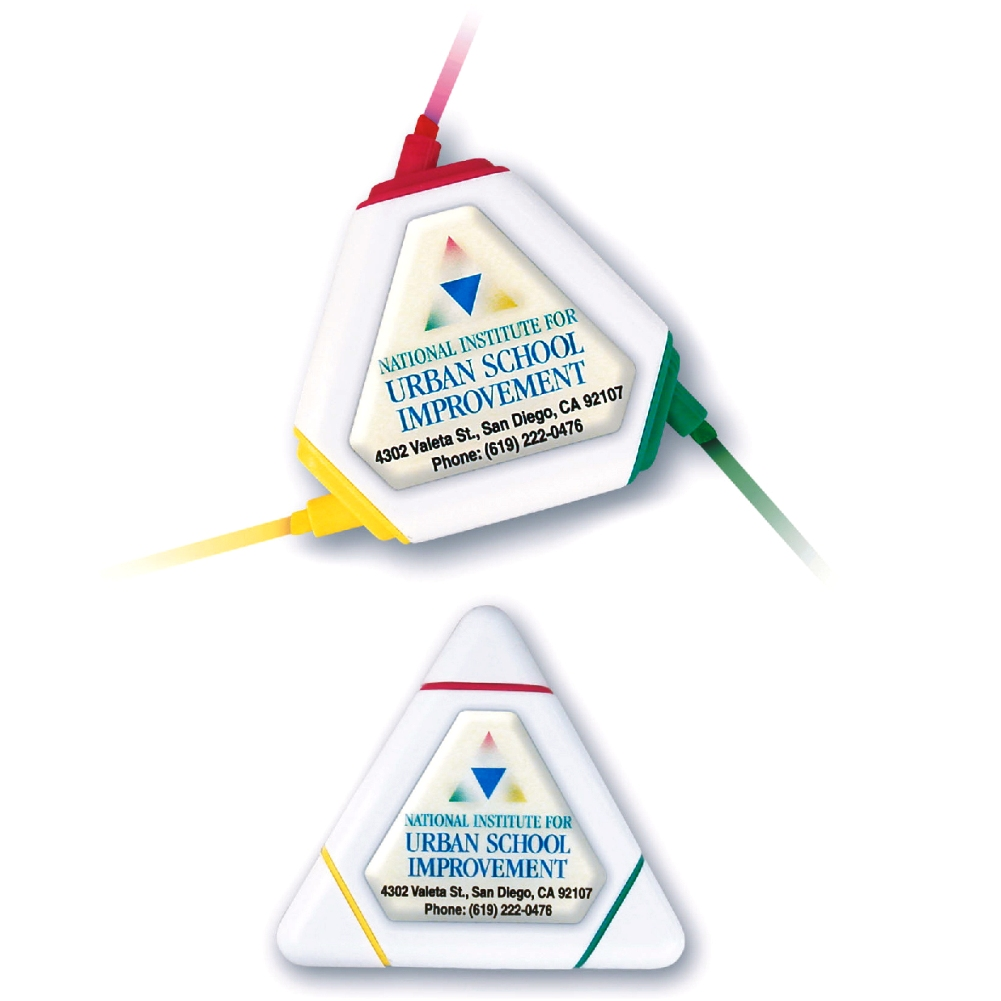 Highlighter trio includes green, pink and yellow highlighters. Price includes 4 color process epoxy dome imprint. Packed in individual poly bag. A great promo for any office!. 3 1/2" L x 3 1/2" W