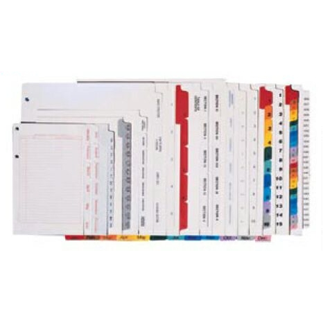 These standard index tabs are available in 8 1/2"x5 1/2", 9 1/2"x6", 11"x8 1/2" sheet sizes, with a 1/2" index extension. Features include # 90 index paper stock, square corners, 3 hole punch, mylar reinforced binding edge and clear mylar tabs up to 3 1/4" in length.