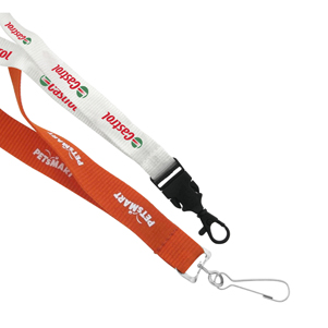 A 3/4" wide lanyard with one of 20 different free attachments made from thin recycled PET material. Recycled PET materials are typically made from recycled plastic water bottles. Price includes a one color, one side, step and repeat imprint. 18" L x 3/4" W